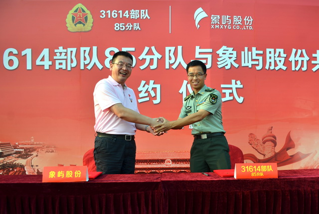 1997年,象嶼股份與原福建省軍區(qū)廈門警備區(qū)高炮營三連結(jié)成共建單位,20年來雙方積極融合,互促共進,積極擁護黨的各項領(lǐng)導方針和政策,共同牢記使命,勇?lián)<倚l(wèi)國和經(jīng)濟建設(shè)的責任。部隊官兵剛毅自律,奮勇忠誠的精神品格,感染和激勵著象嶼人在經(jīng)濟浪潮中奮勇?lián)P帆。